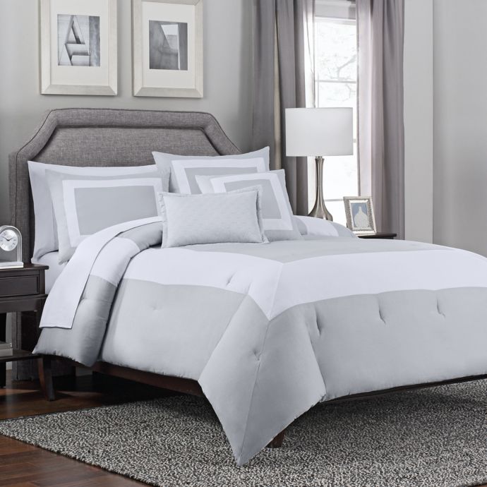 The perfect comforter set is soft, warm, and durable. Shop our selection for the master bedroom, guest room, and kids' room. Full queen 100 percent cotton comforter set with grey white. Duvet covers and comforters are the centrepiece of your bedroom's decor. Featuring a classic damask pattern in a black and white combination. With the full set, it can give your room a coordinated cabin look. They appear in various sets and prices in order to offer you greater option to choose on which type of bedding comforter kits you enjoy the most. Comforter sets in queen, king and other mattress sizes can give your room a fresh look with one simple change. Not to mention, larger piece count comforter sets take away a bit of the worry of purchasing every item separately while smaller piece count comforter sets allow you to make your bed easily in the mornings. Izod connor grey/navy reversible comforter set with shams. We'll review the issue and make a decision about a partial or a full refund. I ordered it in grey and could not be happier the 7 piece comforter set introduces a taste of contemporary luxury to your bedroom decor. Also set sale alerts and shop exclusive offers only on shopstyle.