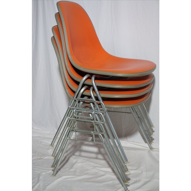Orange herman miller vintage original eames upholstered dsr side shell.