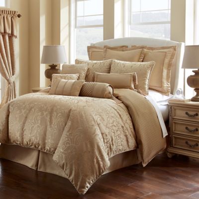 La Scala Gold King 4-Piece Comforter Set from www.homethreads.com See all of croscill's comforter sets available in california king, king, queen and full. Mallery brook comforter set foundry select size: Get 5% in rewards with club o! Dhgate are always here to offer gold comforters king with lowest price, highest quality, and best customer services. King comforter set gold that are available on the site are woven fabrics and made from the finest quality cotton, polyester fiber, etc for maximum comfort and style. Find great deals on ebay for gold comforter set king. Liven up your bedroom with beautiful comforter sets that will make you never want to leave your room. Benjara 10 piece king polyester comforter set with damask print, cream and gold.